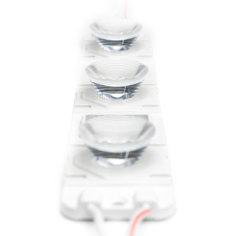 State of the art elliptical lenses shoot a narrow beam of light across the inside face of the sign to provide even and efficient illumination of light-boxes 50mm depth and greater. Side lit, back lit and edge lit – Blade Plus does it all. This narrow beam LED Module is ideal for indoor and outdoor lighting installations and can run up to 10 LED modules per series. Blade Plus is available in Warm White (3000K) and Cool White (6500K), with an impressive 5 year warranty.